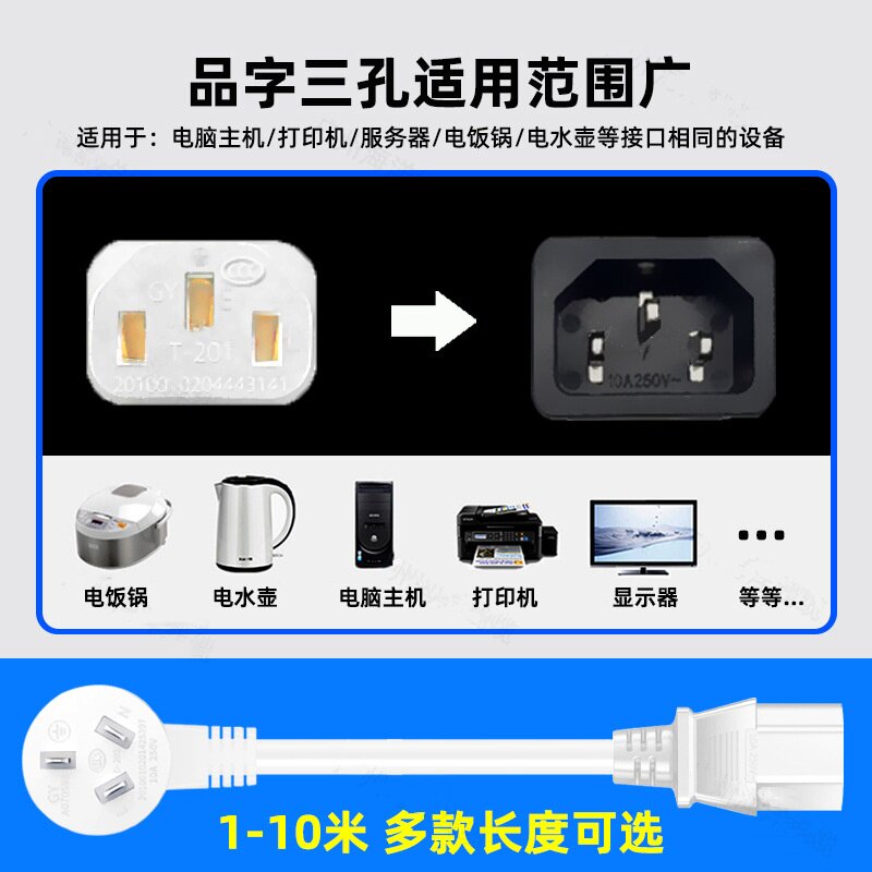 📚 适用/插头10A250v跑步机电源线充电线品字尾三孔脚插头线配件