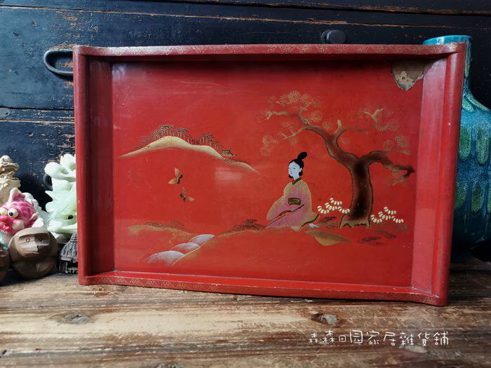 📚 日本回流人物描金手绘干泡茶台功夫茶道民国托盘茶道文人茶盘收纳