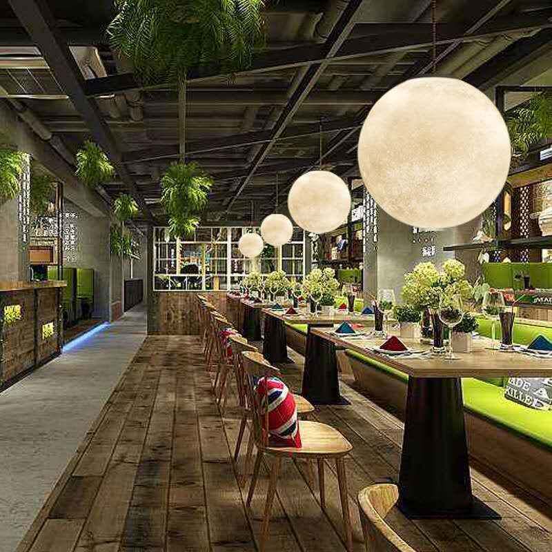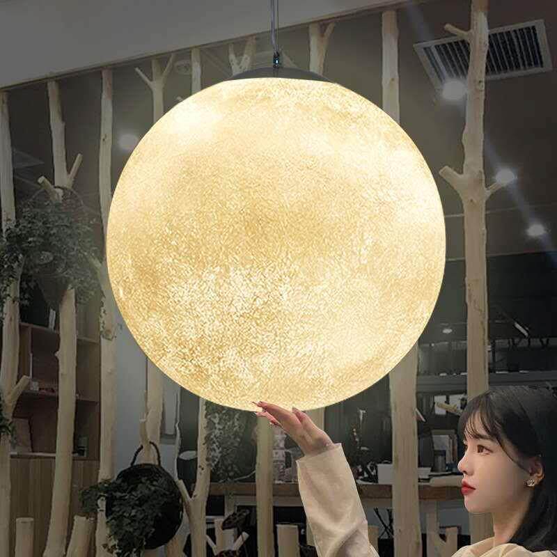 📚 月球吊灯北欧现代简约店铺卧室餐厅灯饰网红圆球形星球吊灯月亮灯