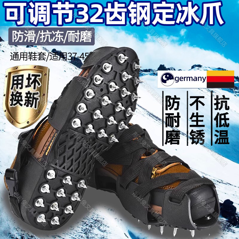 📚 高端冰爪户外登山雪地防滑鞋套防滑钉专业冰上防摔冰钓鱼冰抓雪爪
