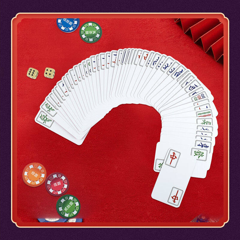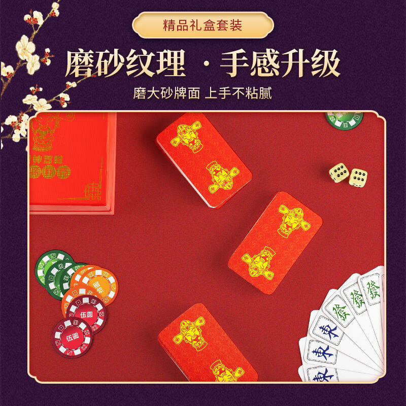 📚 望京扑克麻将牌迷你纸牌麻将家用塑料防水麻将扑克磨砂耐用红色礼