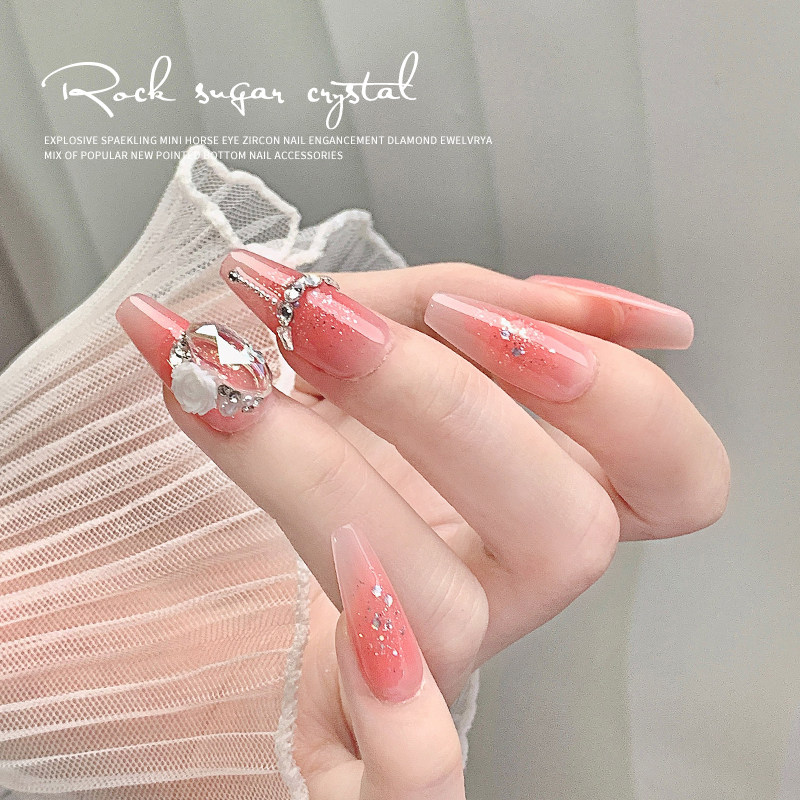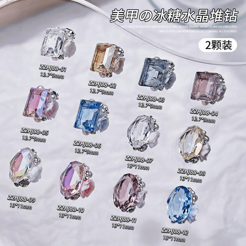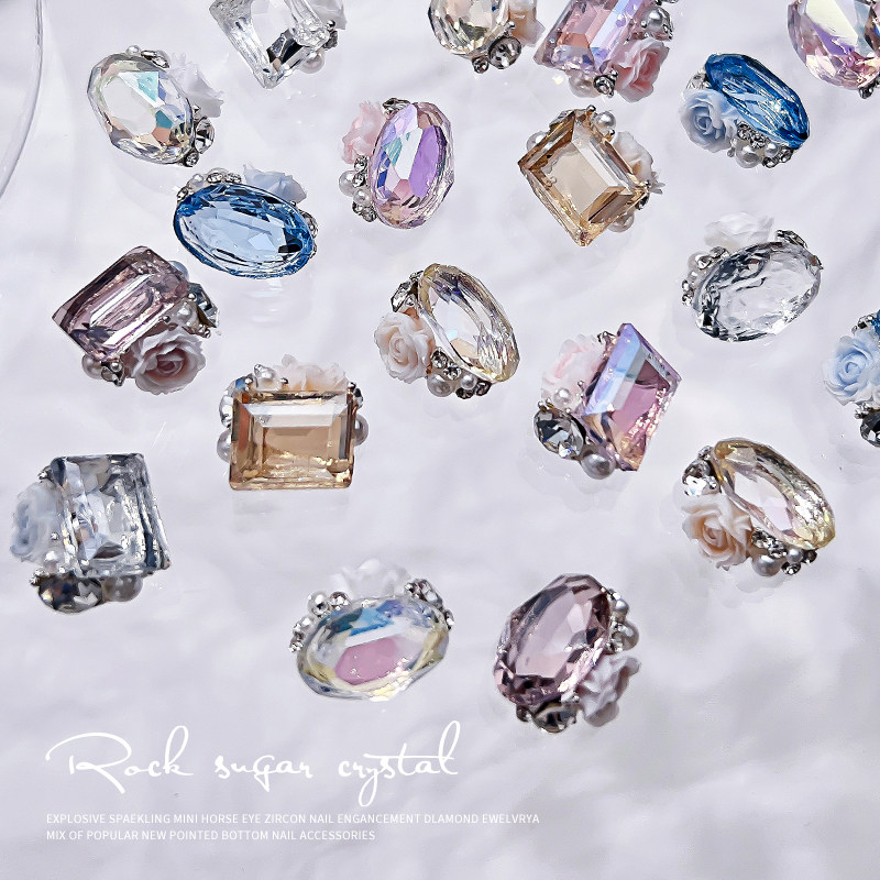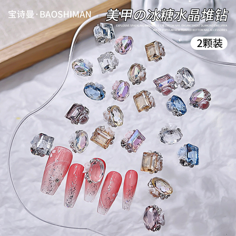 📚 美甲饰品超闪长方冰糖水晶堆钻成品鸽子蛋透底彩色钻石穿戴甲装饰