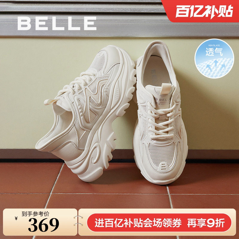 📚 百丽厚底老爹鞋闪穿小白鞋女鞋子透气网面运动休闲鞋B2H1DBM4