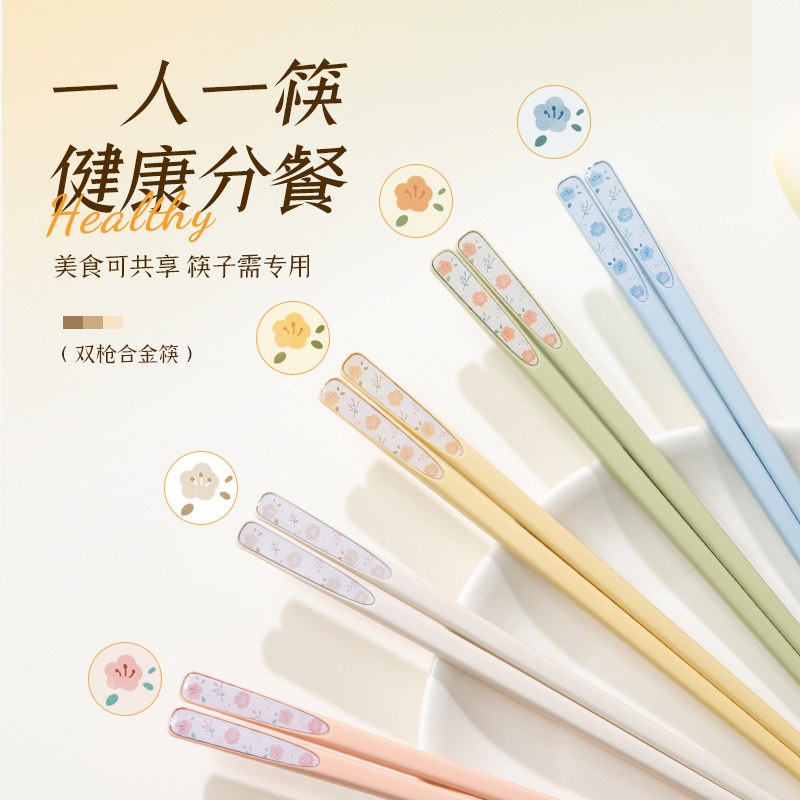 📚 双枪合金筷子家用分餐防滑快子高档新款一人一筷高颜值抗菌筷子