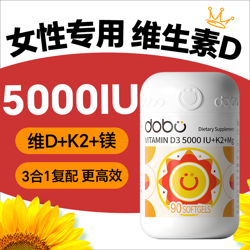 📚 DOBO阳光瓶维生素d成人女性备d3孕vd5000iu孕妇三合一K2甘氨酸镁