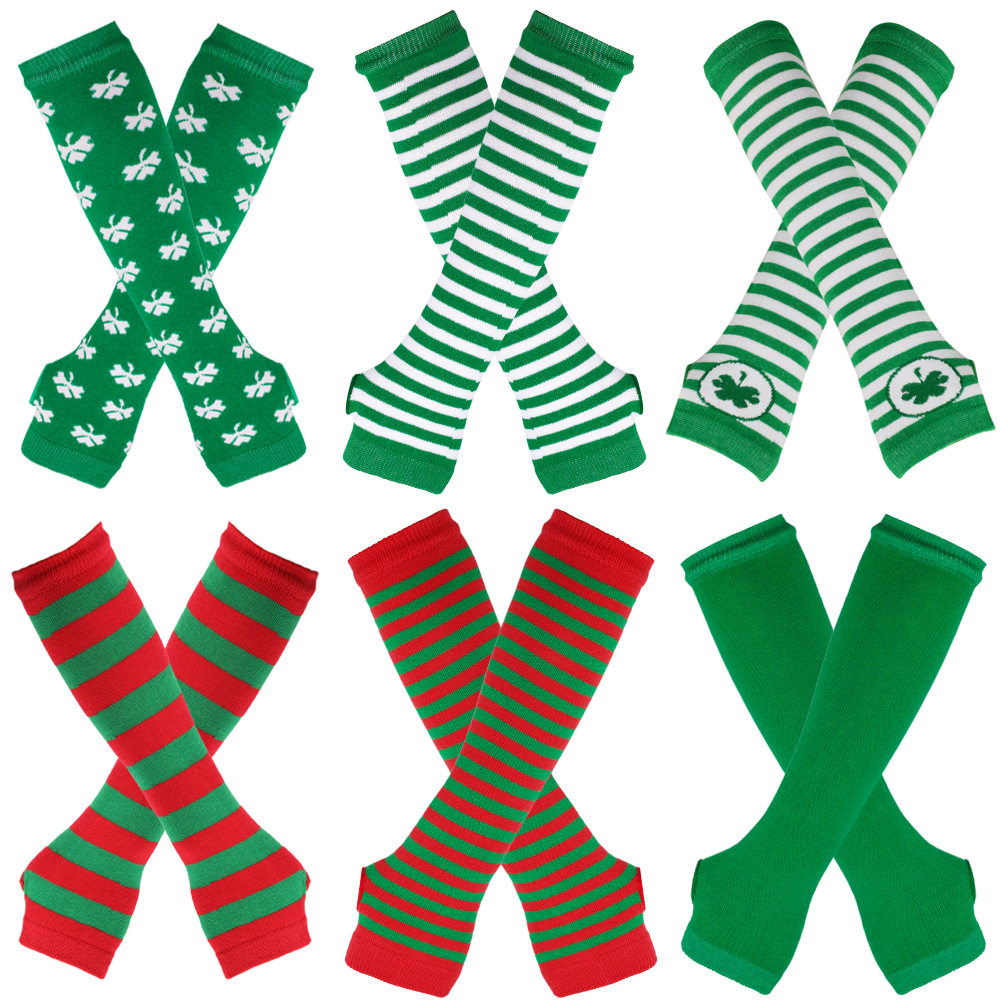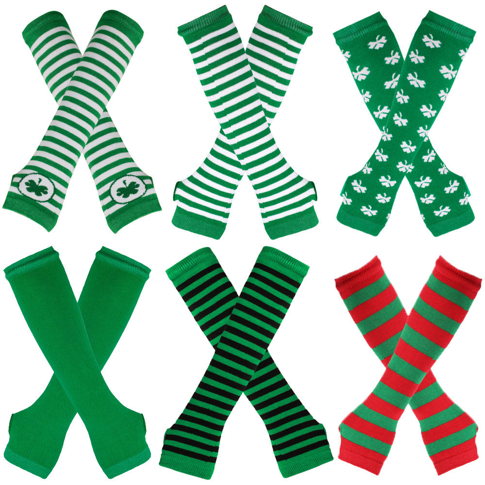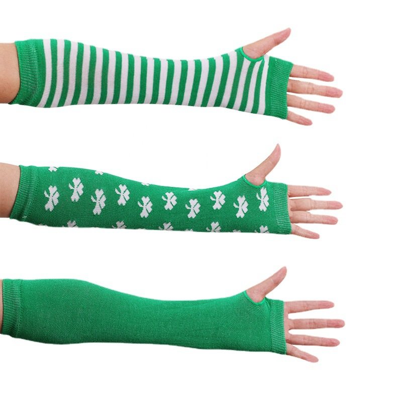 📚 爱尔兰节绿色长手套露指女长款腕套男款圣帕特里克节三叶草手臂套