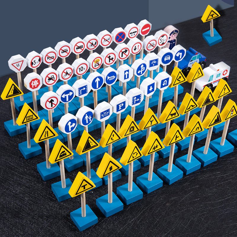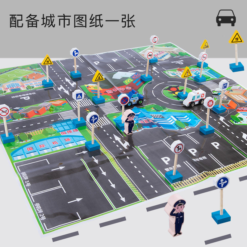 📚 儿童布置场景交通标志牌认知小汽车积木 2-3-4岁幼儿园益智力玩具