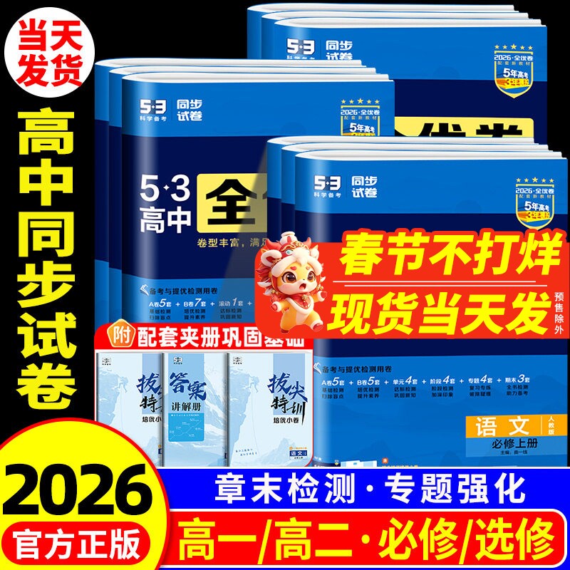 📚 2026版五三全优卷高中高一高二上册下册试卷全套数学物理化学生物政治历史地理语文英语选择性必修一二三5.3全优卷测试练习必刷题