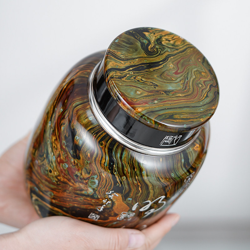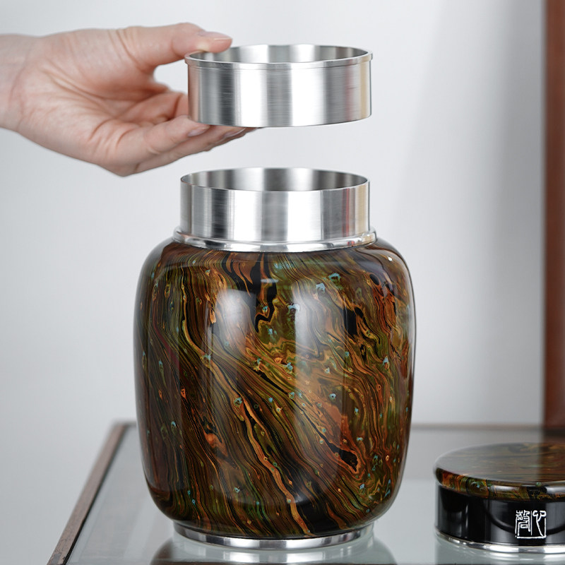 📚 斑锡龙大漆锡罐中号纯锡茶叶罐双盖密封存茶罐明心茶仓手工漆器