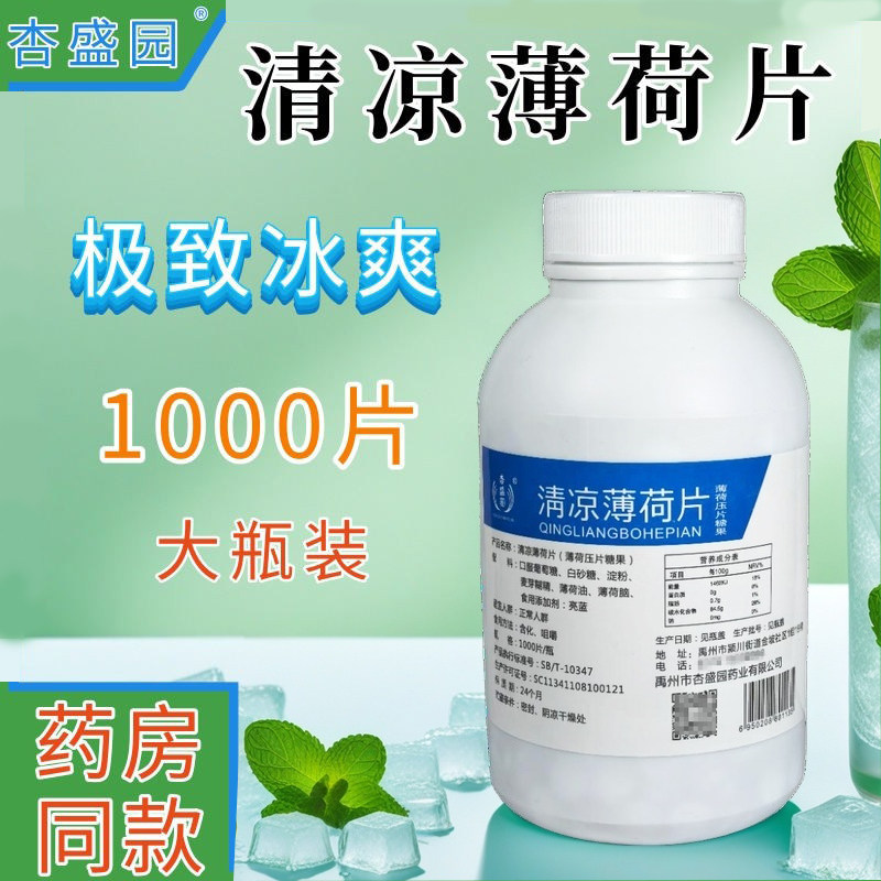 📚 正品杏盛园清凉薄荷片1000粒瓶嗓子冰凉舒适薄荷糖口含片老少皆宜