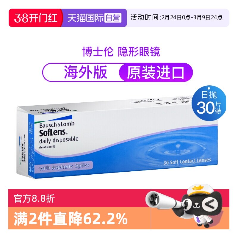 📚 【自营】博士伦隐形近视眼镜日抛清朗舒适水凝胶30片装海外版