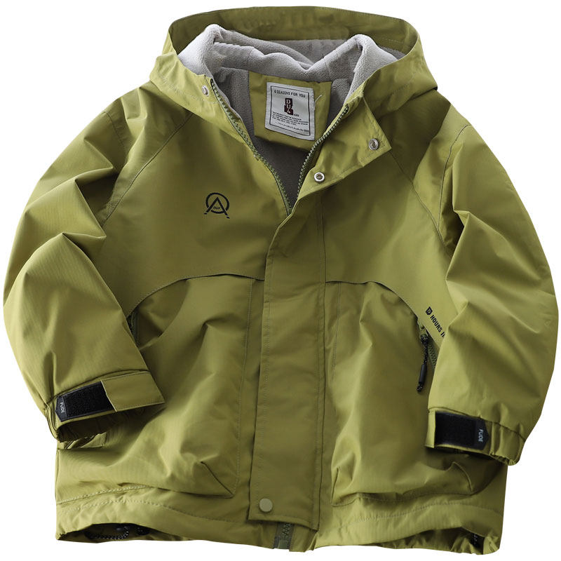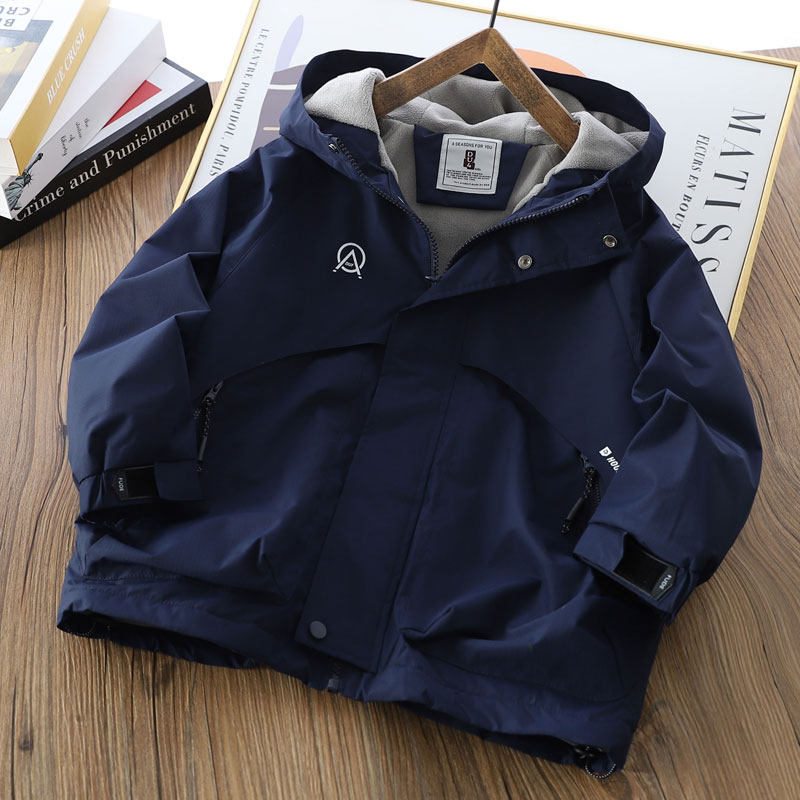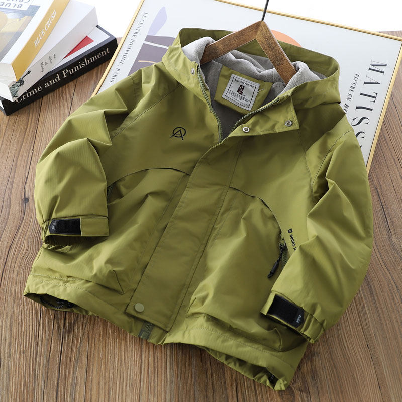 📚 男童薄绒连帽冲锋衣2025秋冬季儿童纯色拉链衫中大童加厚防风外套