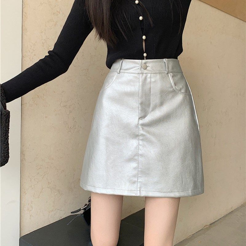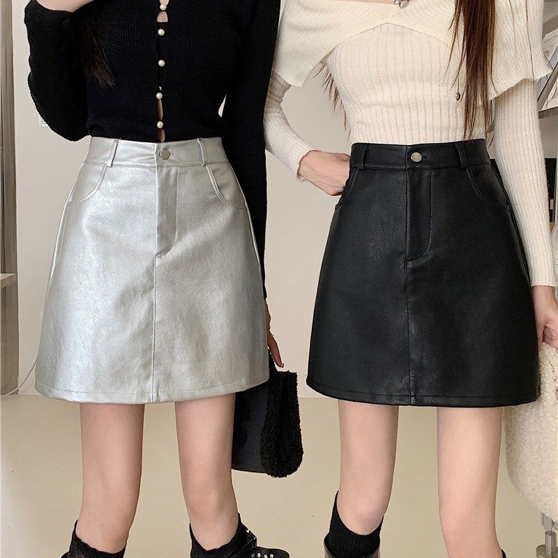📚 大码黑色pu小皮裙半身裙女秋冬高腰显瘦A字裙小个子遮胯包臀短裙