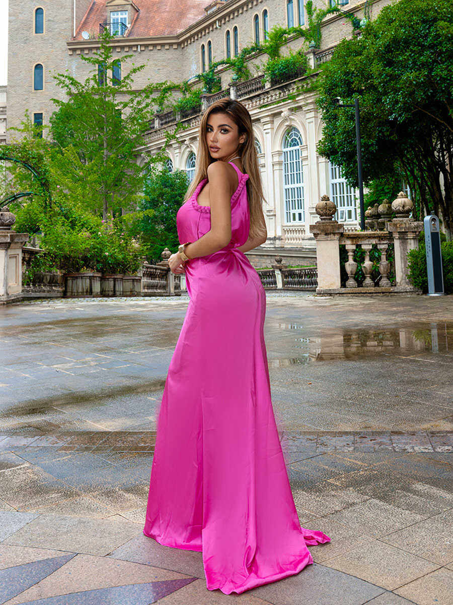 📚 欧美风性感编织镂空露背连衣裙女气质名媛晚宴party礼服鱼尾长裙