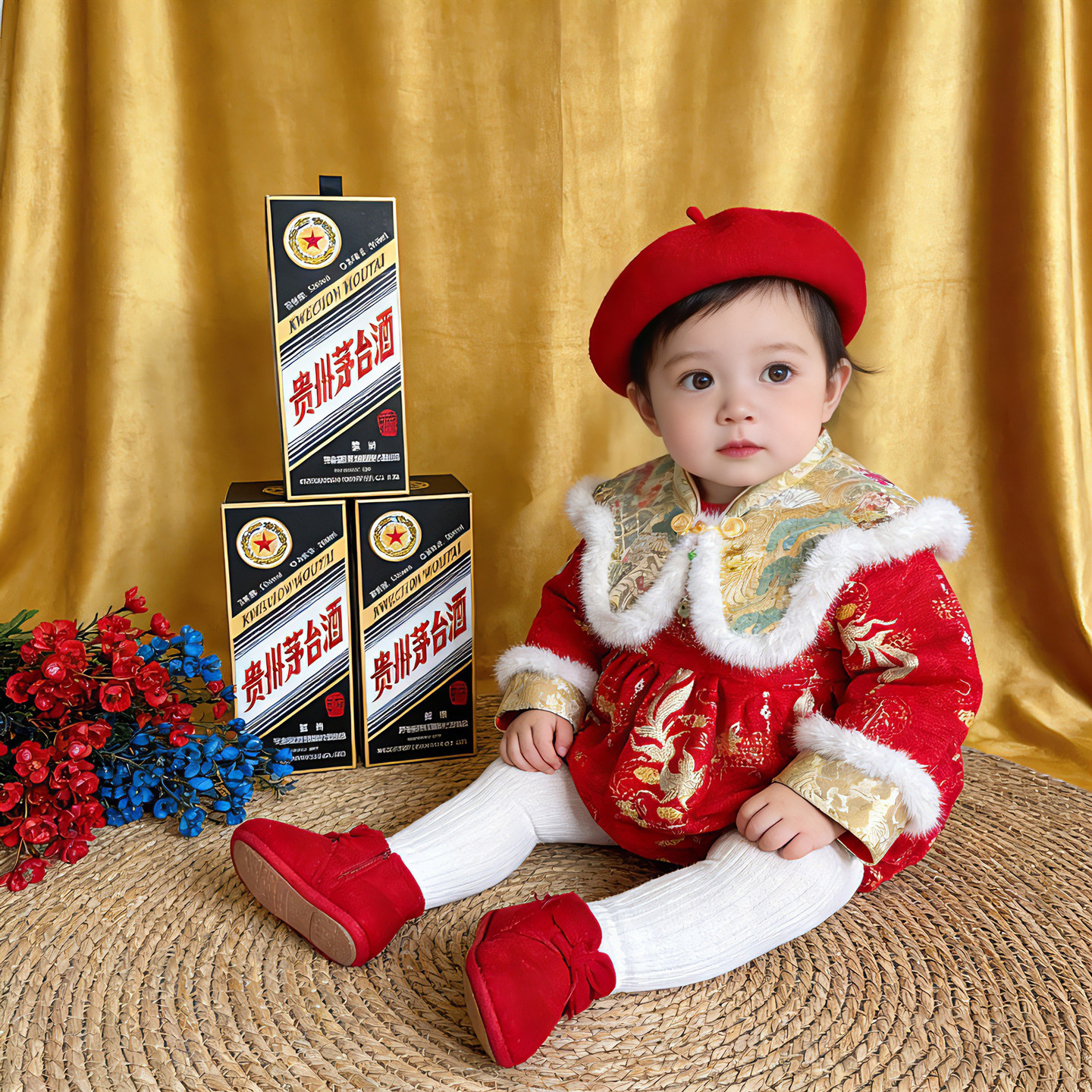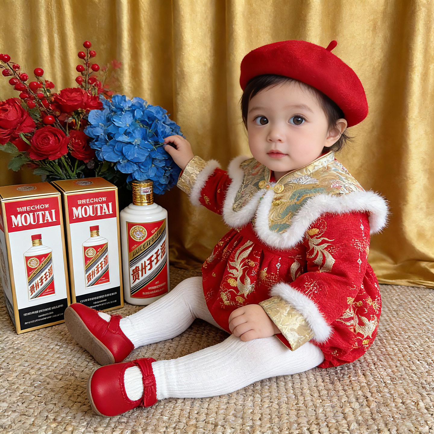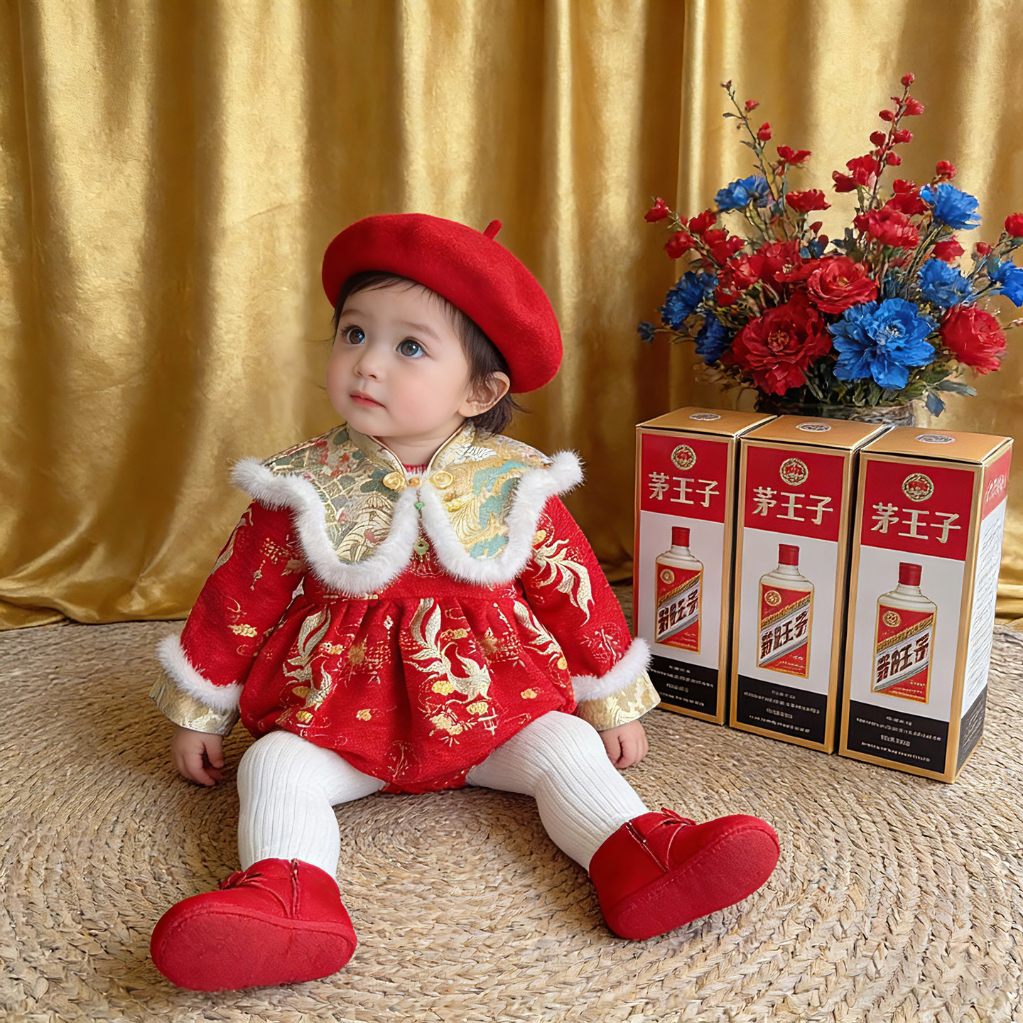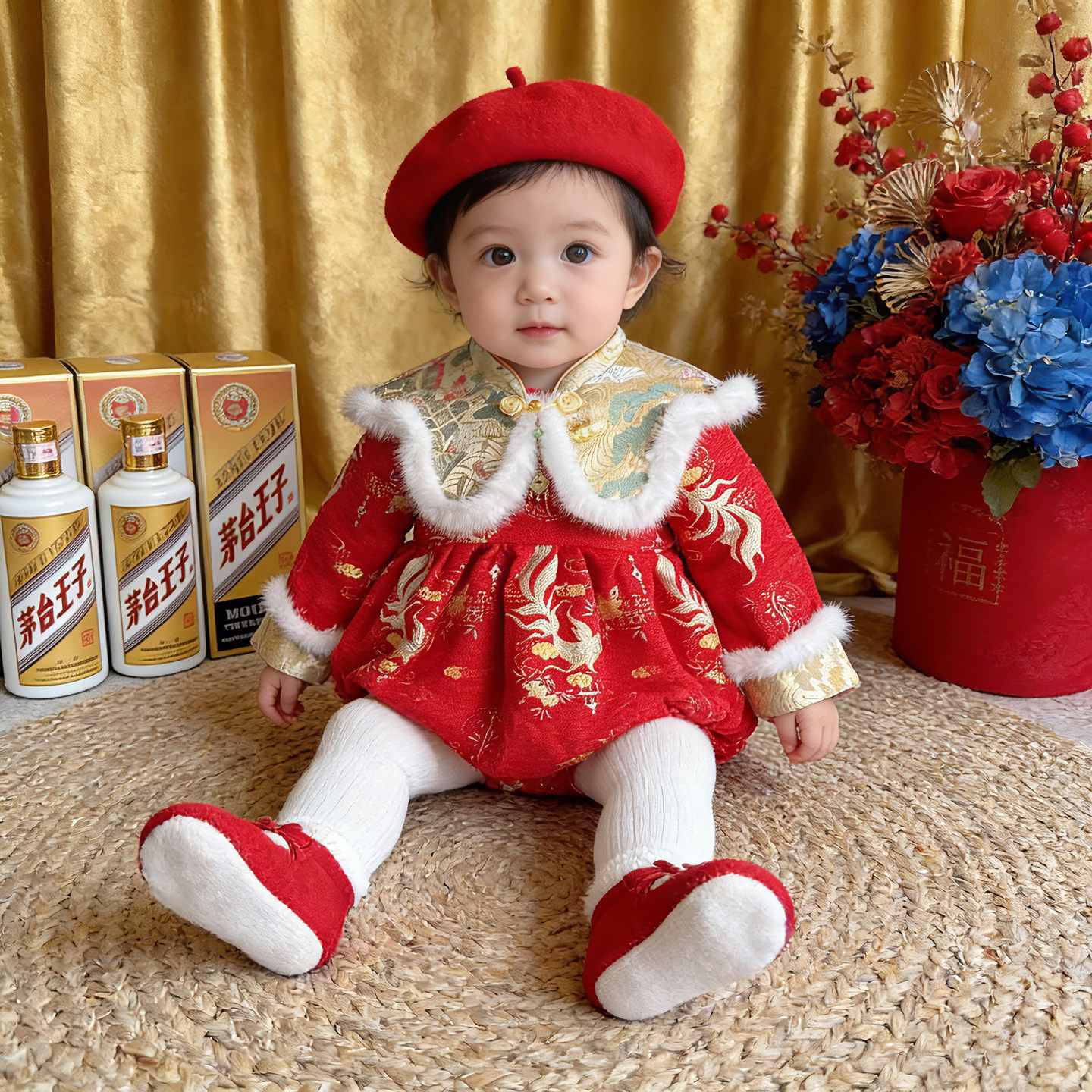 📚 周岁女宝礼服冬季中式红色喜庆风小公主女宝宝婴儿生日抓周宴衣服