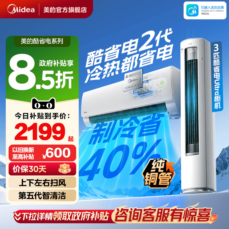 28¥ HU926 AqxP5i28QuO¥ https://m.tb.cn/h.iJFuqVh 美的空调新一级能效家用大1.5匹2匹变频冷暖挂机2026款酷省电二代 --------------------- 【原售价】5,999元 【现售价】4,999元。
