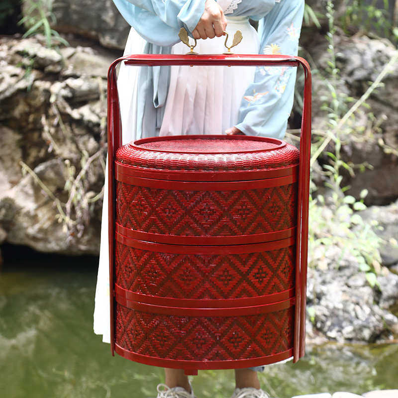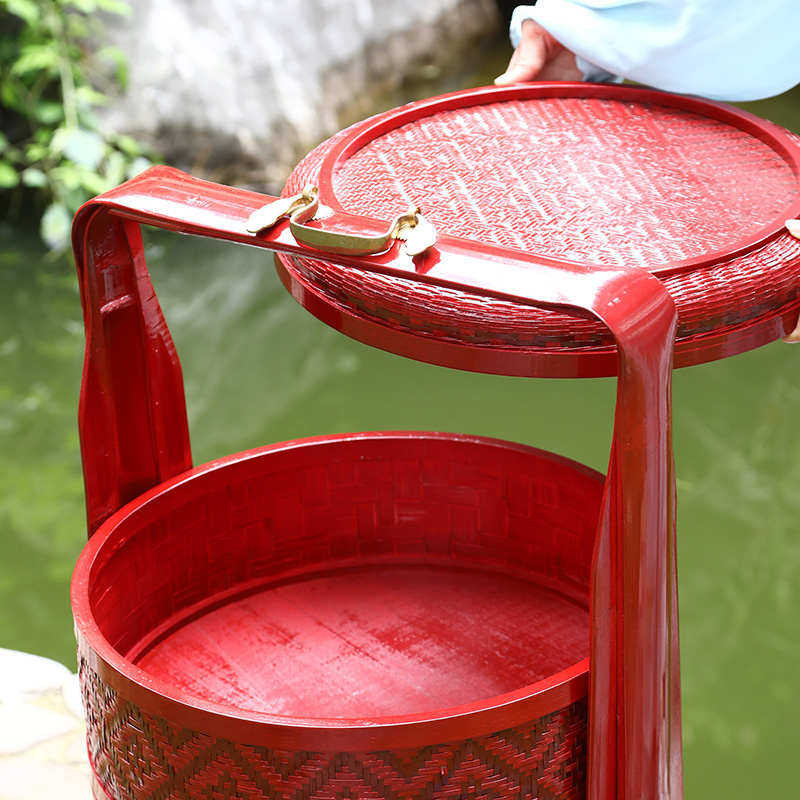 📚 竹制品手工竹编食盒提篮结婚挑担喜事篮婚庆篮聘礼篮多层复古竹篮