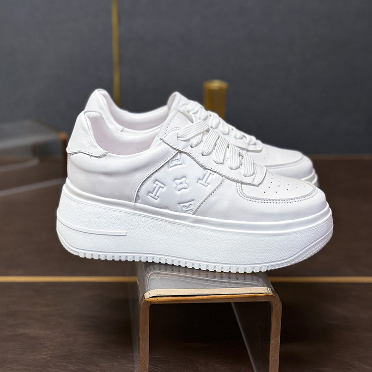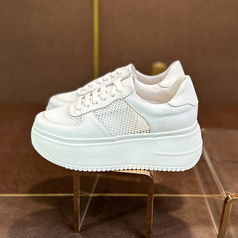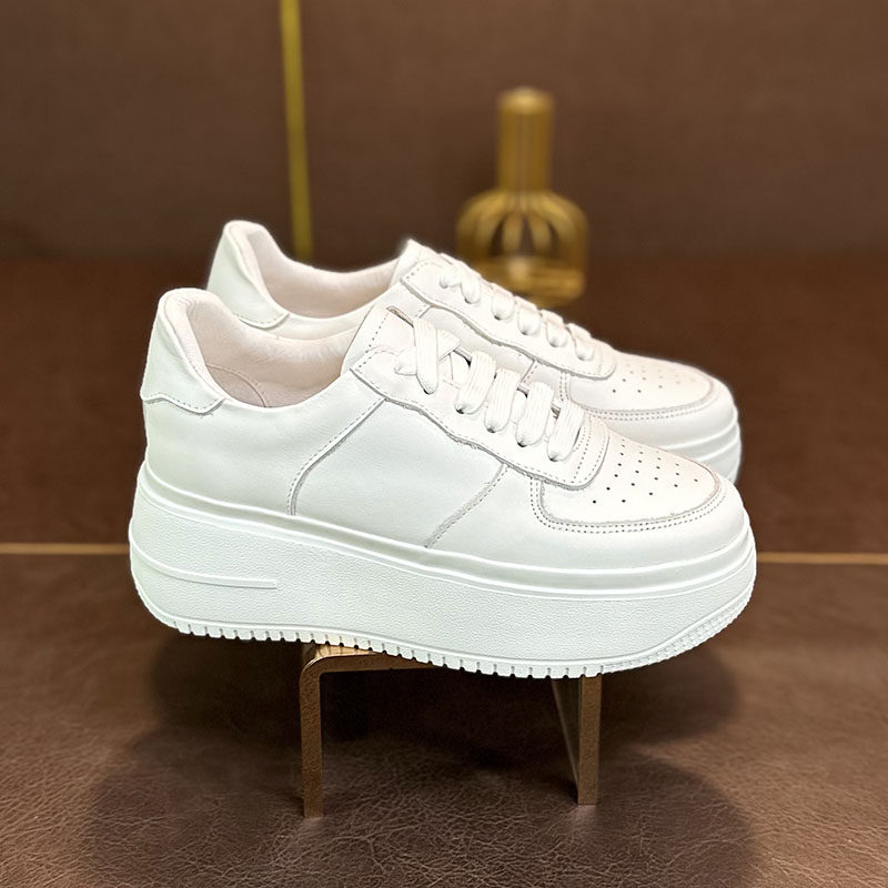 📚 真皮8cm厚底增高女鞋2025新款春秋小个子配阔腿裤的松糕小白鞋