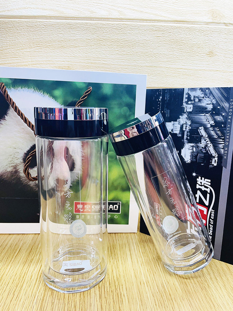 📚 思宝东方之珠水晶杯圆形商用高档双层玻璃杯透明泡茶大容量男水杯