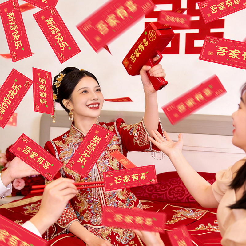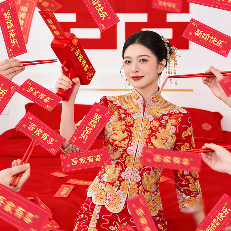 📚 接亲小游戏结婚道具喷钱枪筷子夹喜钞创意婚礼整蛊新郎伴郎氛围感