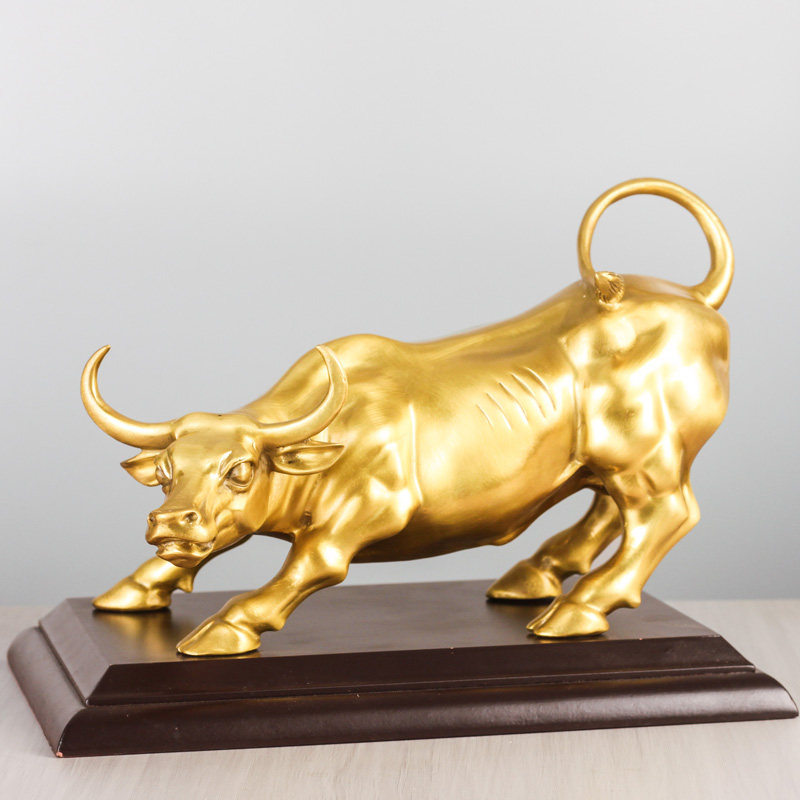 📚 铜牛摆件纯黄铜旺市金牛招财牛办公室摆件汽车内装饰品客厅礼品