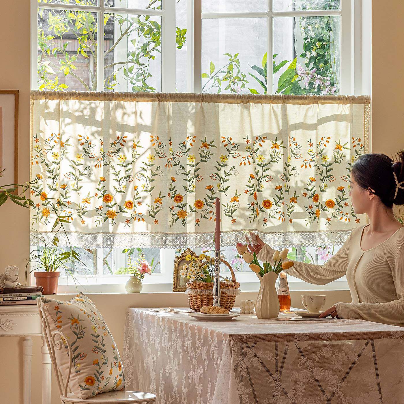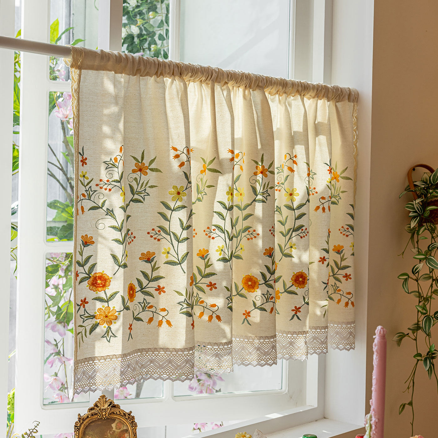 📚 美式田园小半帘遮挡帘不透人隐私帘厨房小窗帘短帘柜子屏风帘子