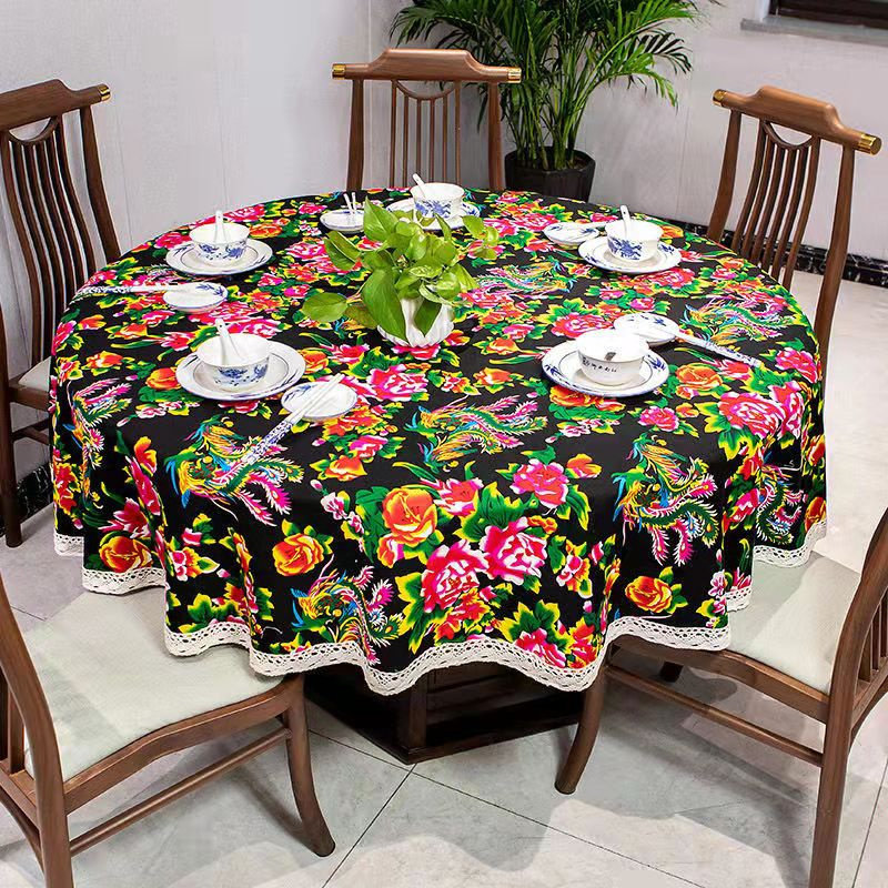 📚 新农家院印染兰花布料东北花布桌布椅糊墙乡村土菜馆民族风情
