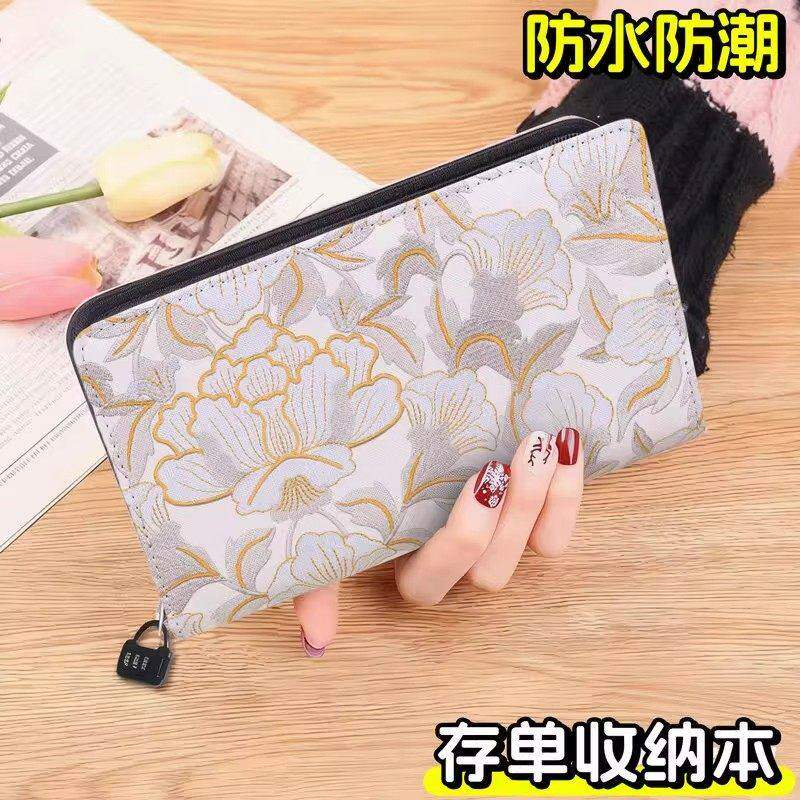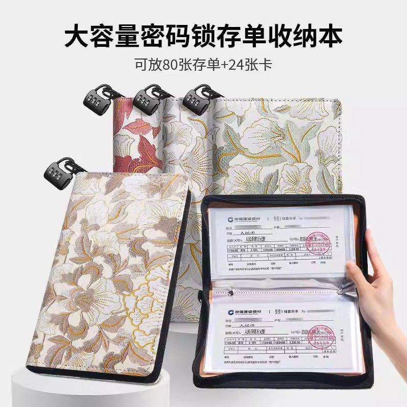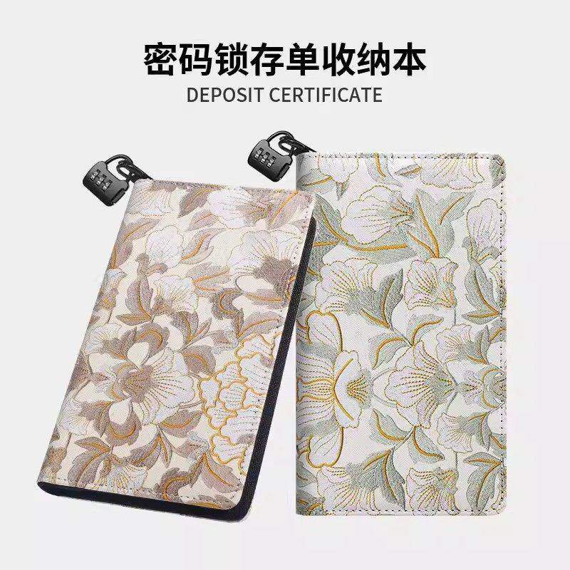 📚 高端拉链刺绣牡丹花纹定期存单收纳本专用夹银行纸质一体包2026新款大容量防水存折支票多功能票据存折收纳册