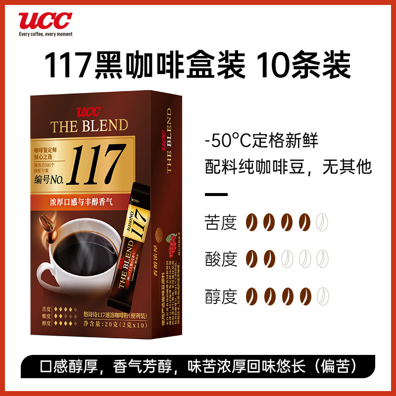 📚 进口UCC/悠诗诗117/114条装速溶咖啡粉冻干纯黑咖啡10p便携装咖啡
