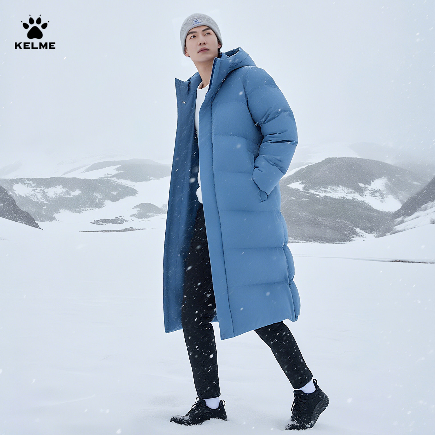 📚 卡尔美运动羽绒服长款过膝男女连帽体育生冬训大衣训练服加厚保暖