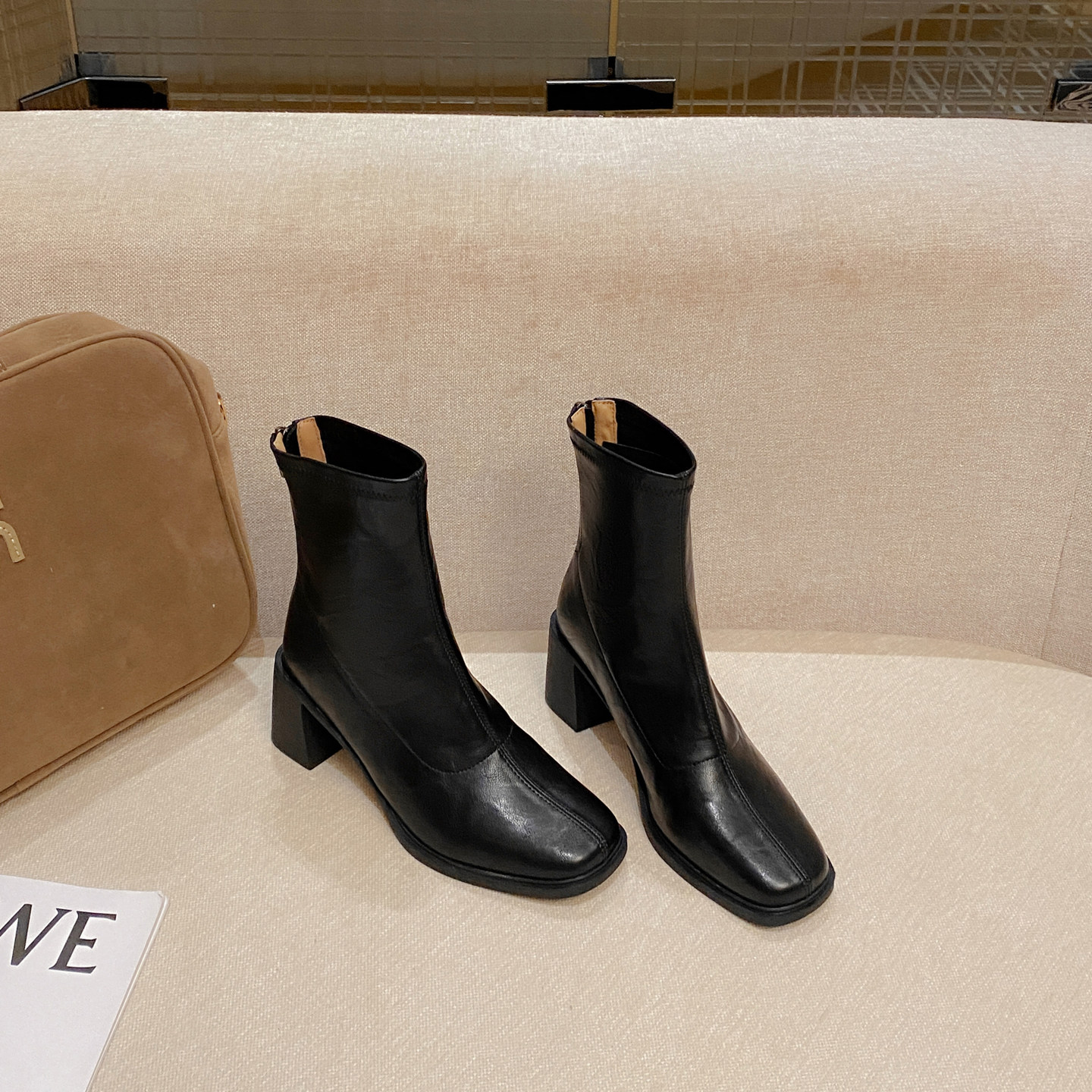 📚 小码313233粗跟方头瘦瘦靴女增高6.5cm法式马丁靴2025秋冬短靴