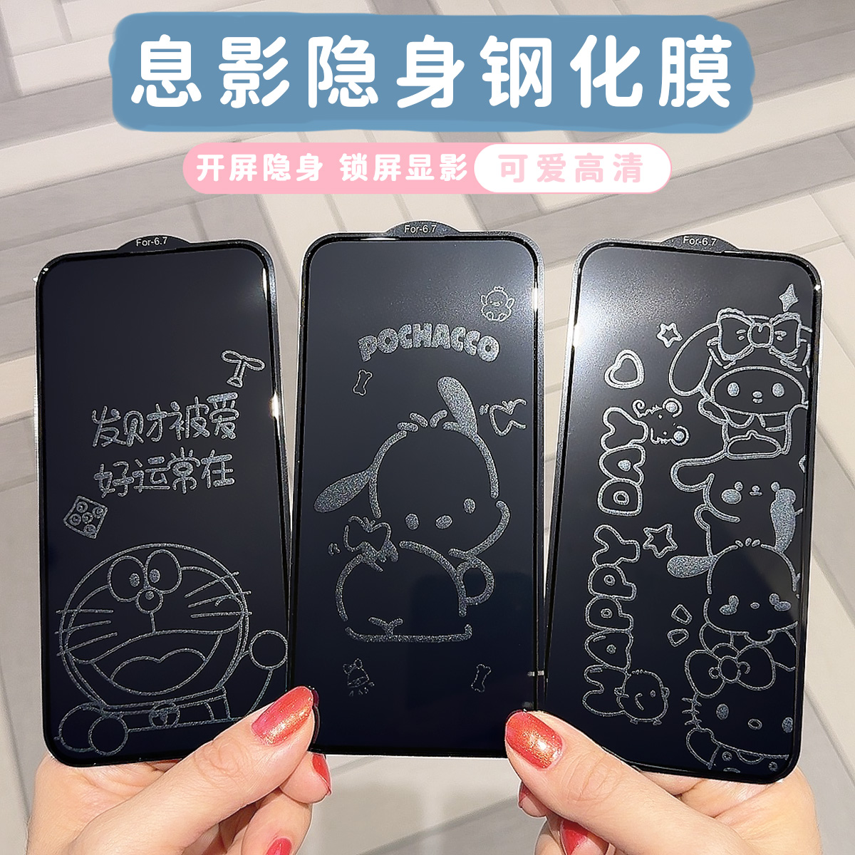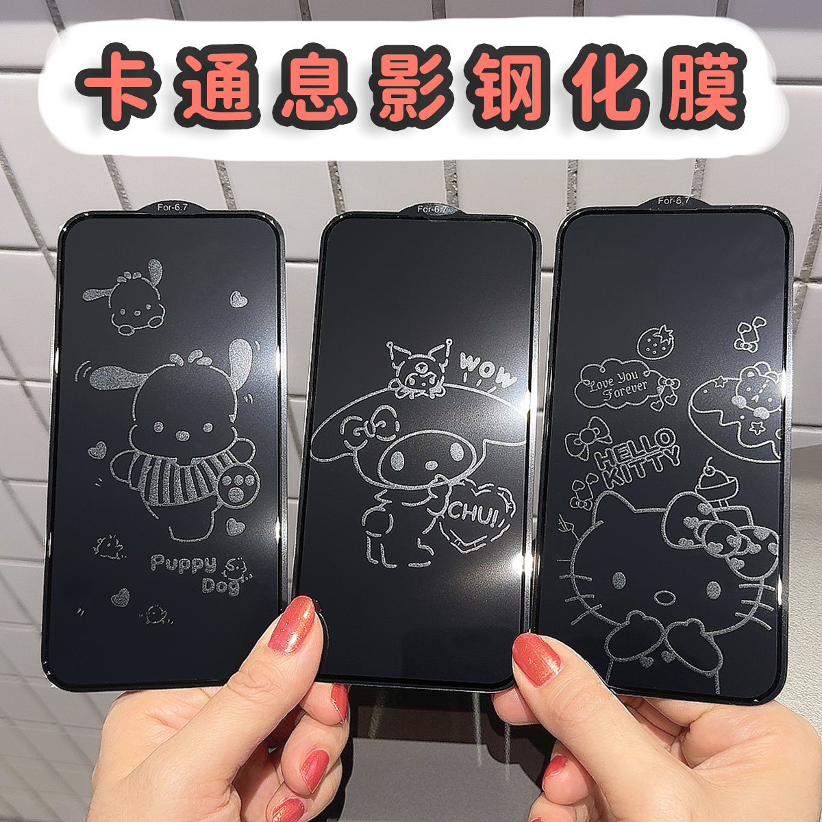📚 新款苹果16promax息影钢化膜15PRO卡通膜适用iPhone11手机防爆膜XR高清玻璃贴14plus隐形潮影12图案可爱女13