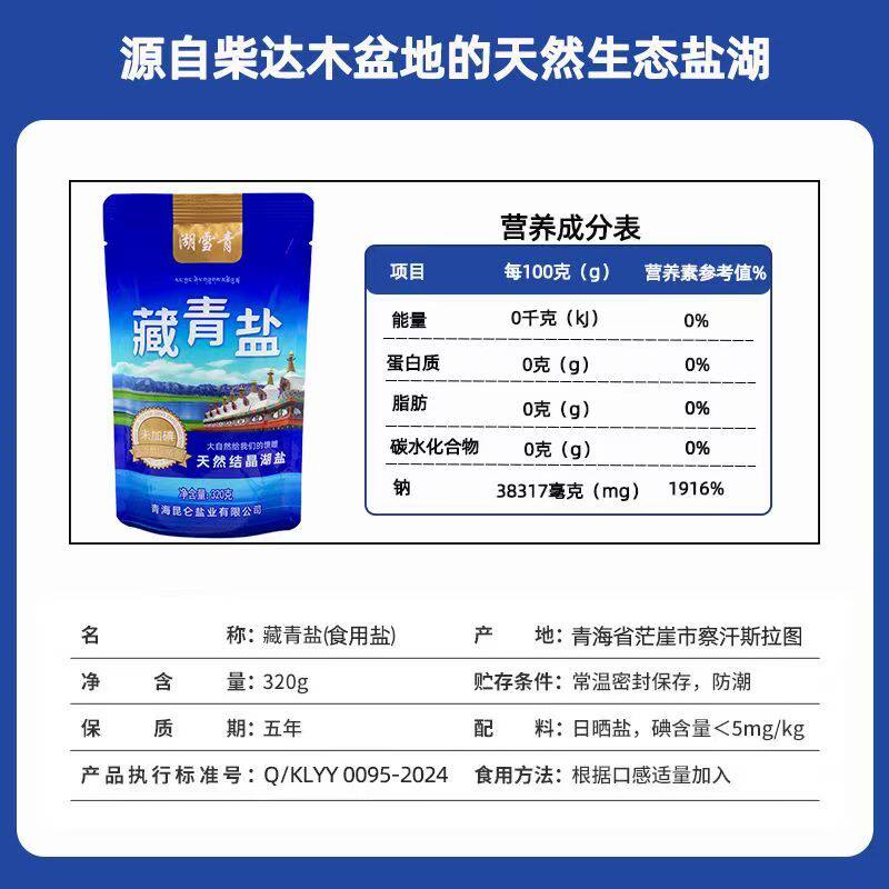 📚 湖雪青藏青盐青海特产正宗青海湖食盐未加碘家用日晒盐无添加320g