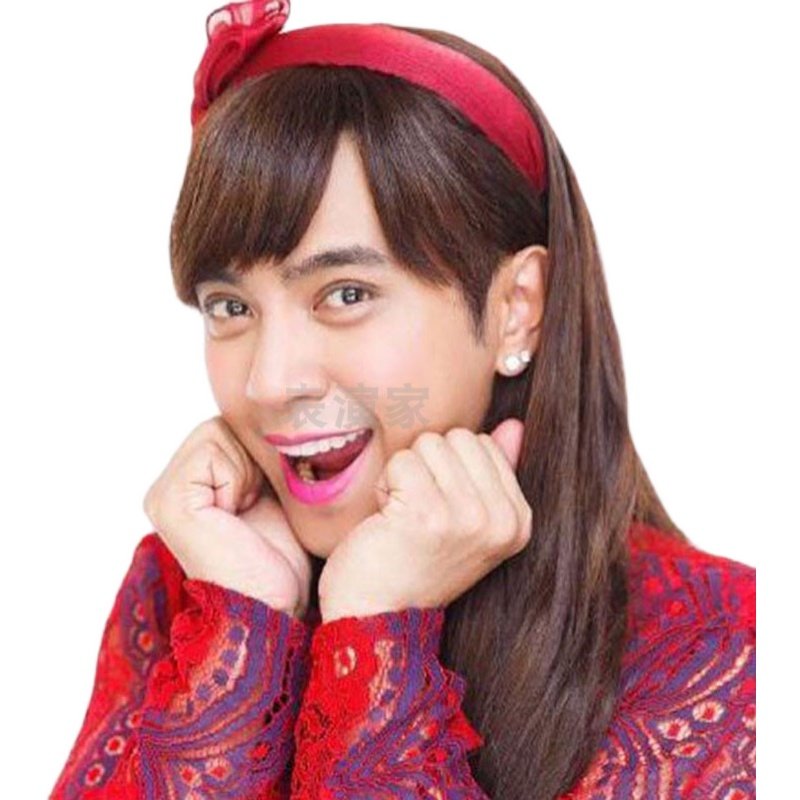 📚 朱碧石同款男扮女装假发长卷发斜刘海长发年会表演节目搞笑发型