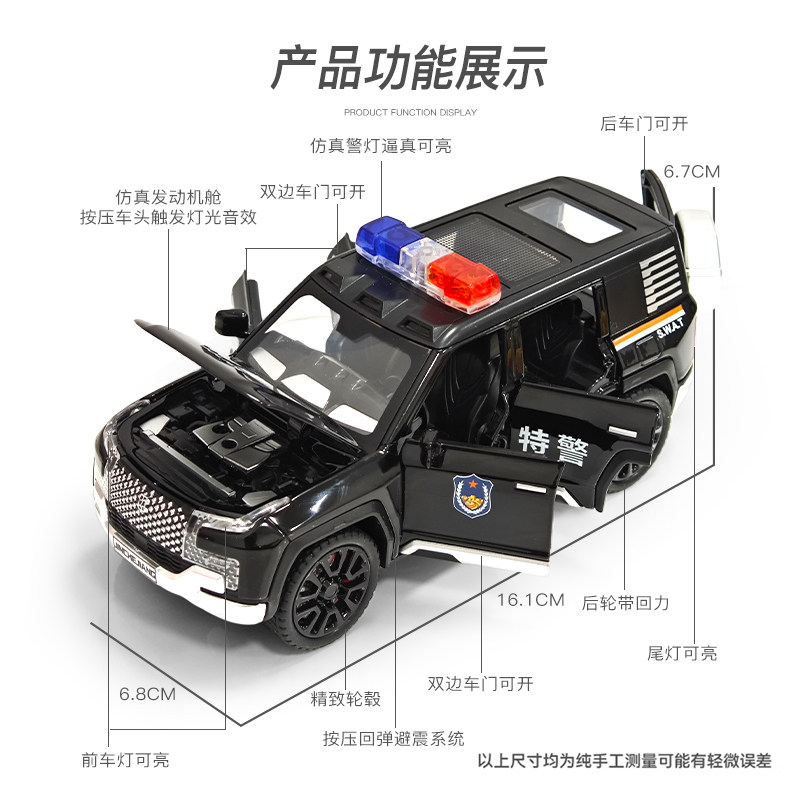 📚 1:32比亚迪仰望U8警车合金车模仿真回力声光男孩收藏车模玩具