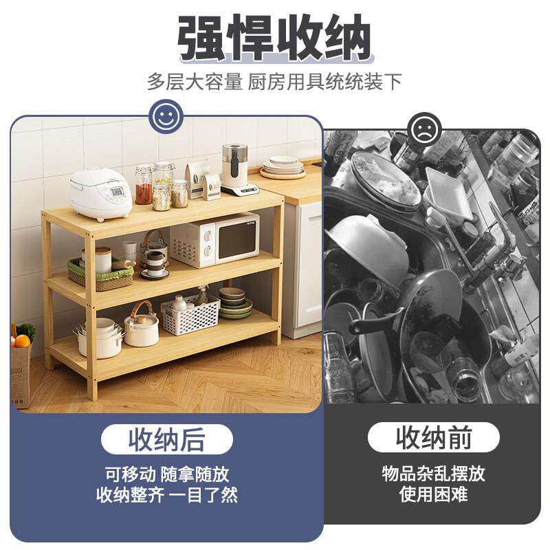 📚 实木厨房多功能置物架落地多层家用放微波炉烤箱锅架夹缝收纳层架