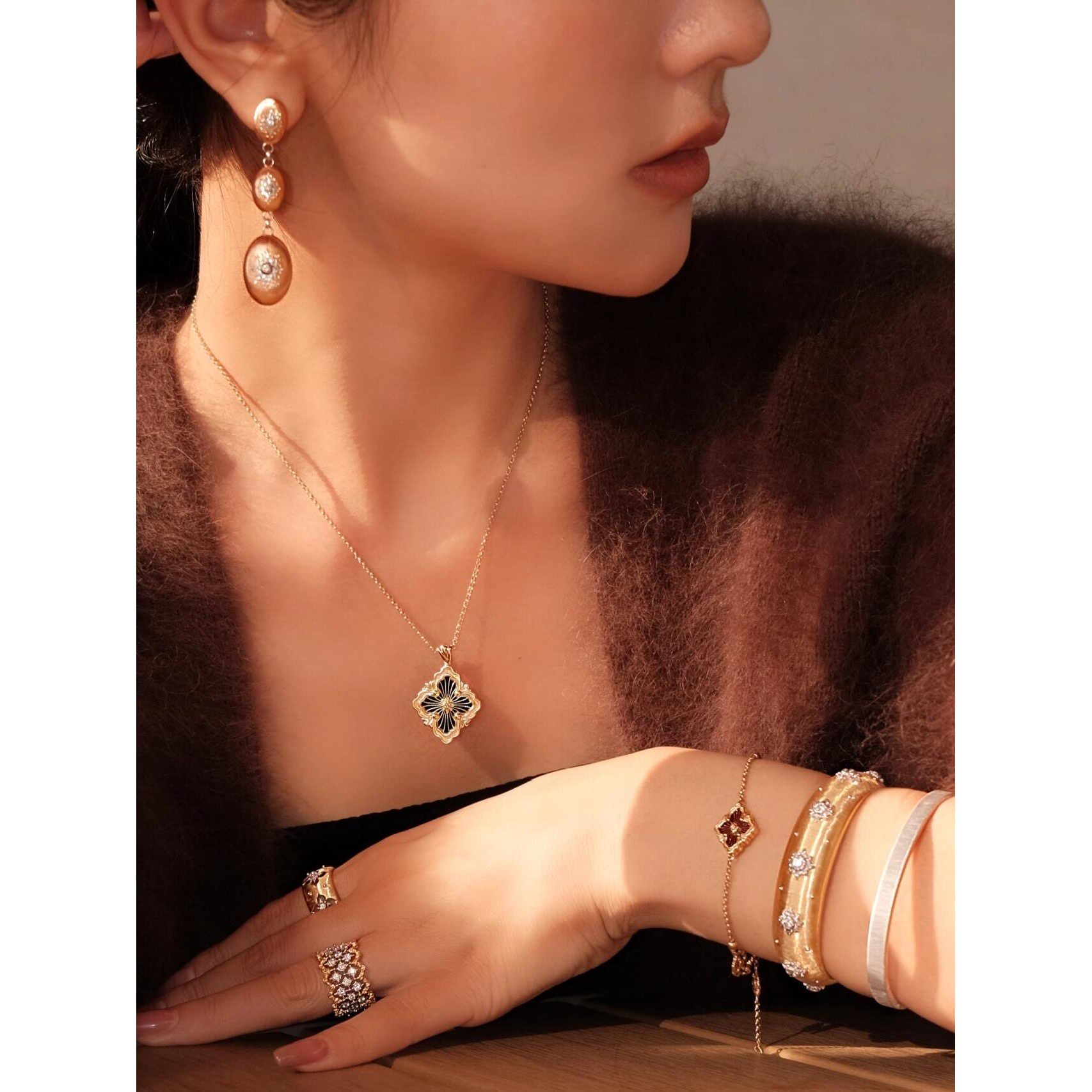 📚 Star Ray布契拉丝歌剧院项链女玫瑰金贝母玛瑙天河石四叶草锁骨链