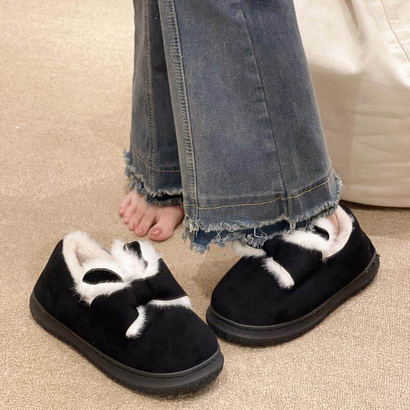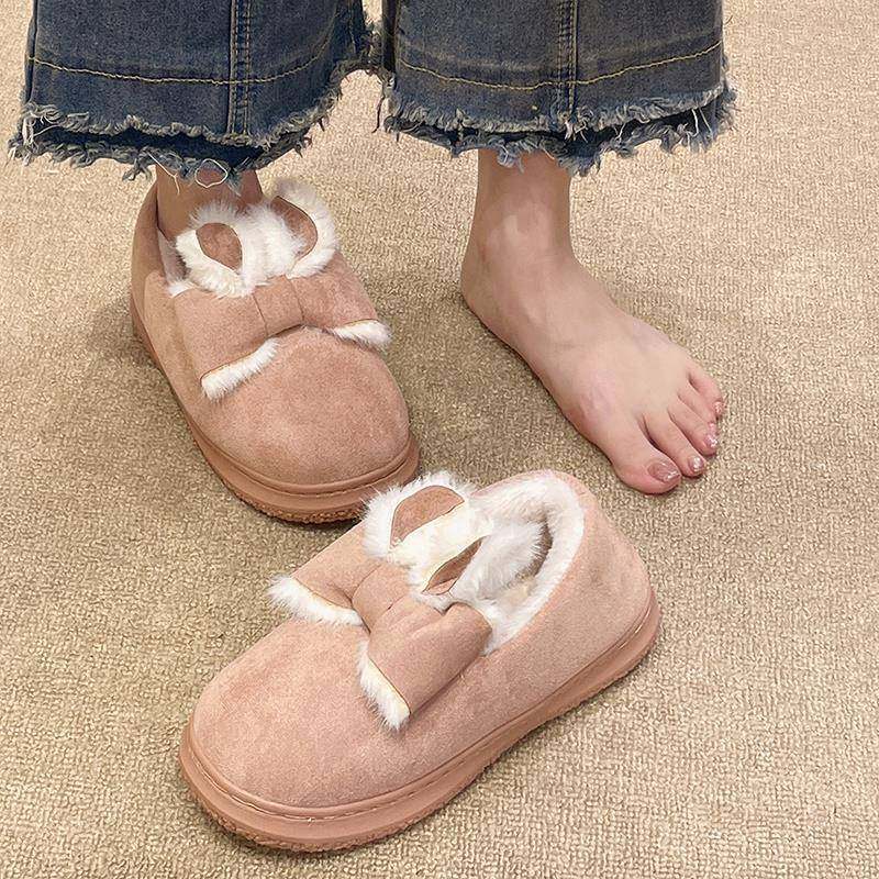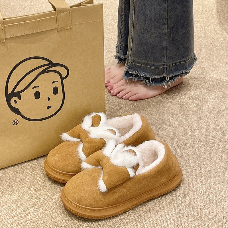 📚 秋冬时尚蝴蝶结覆古拖鞋女士室内居家加绒保暖防滑厚底包跟1207z
