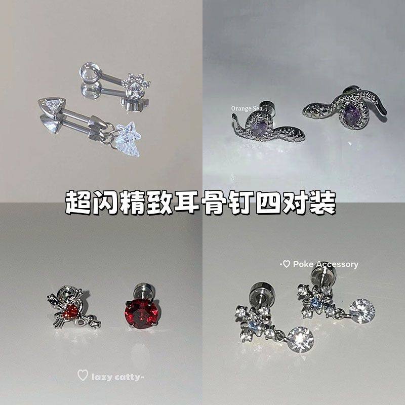 💥超值种草!可拆卸猫爪双恶魔钉耳钉女外螺旋五角星养耳洞耳环,券后价5️⃣超值大放送!