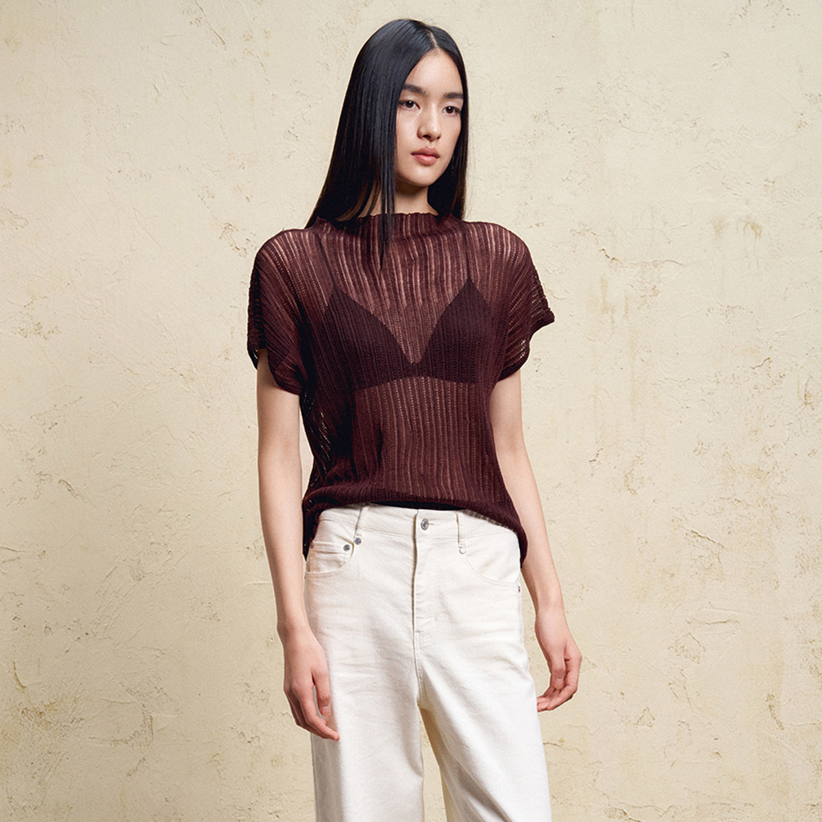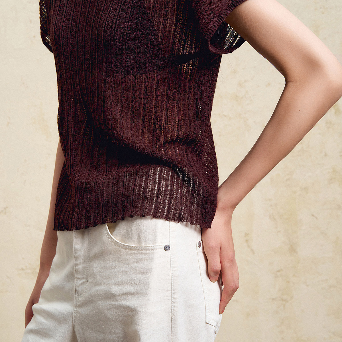 📚 Re-BLUE轻奢优雅女装精致简约舒适百搭镂空绞花针织上衣