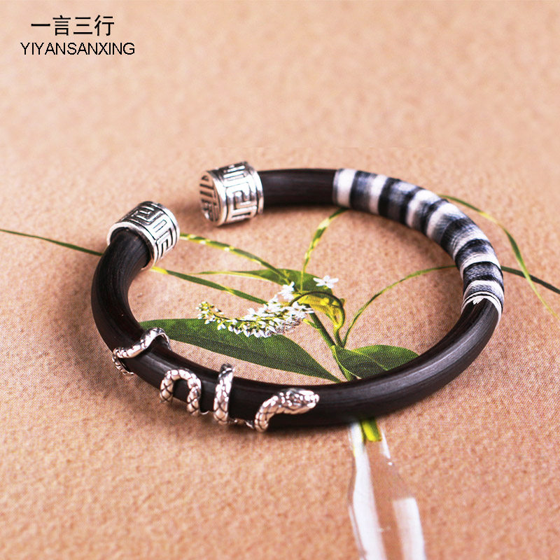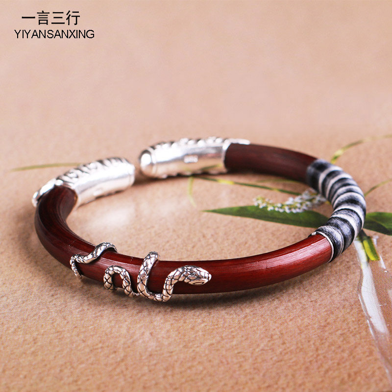 📚 玫瑰与蛇鸡血藤木手镯情侣男女款复古酷小众亚文化纯银不掉色饰品