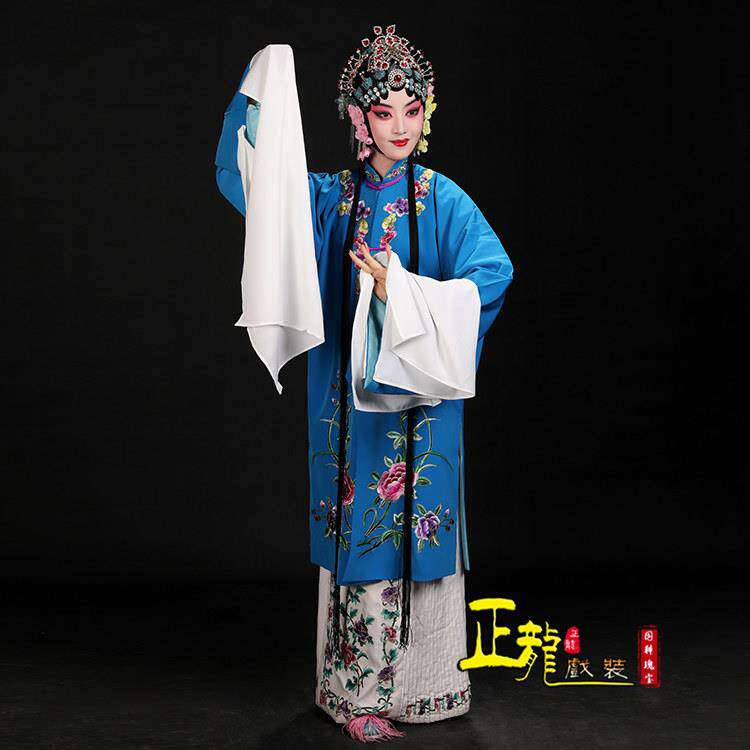 📚 正龙戏装京剧戏曲演出服青衣褶子花旦水袖戏服新绉大叶牡丹青衣披