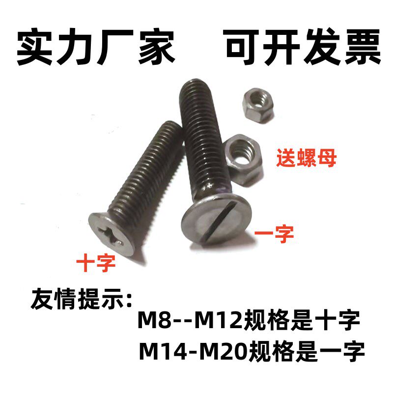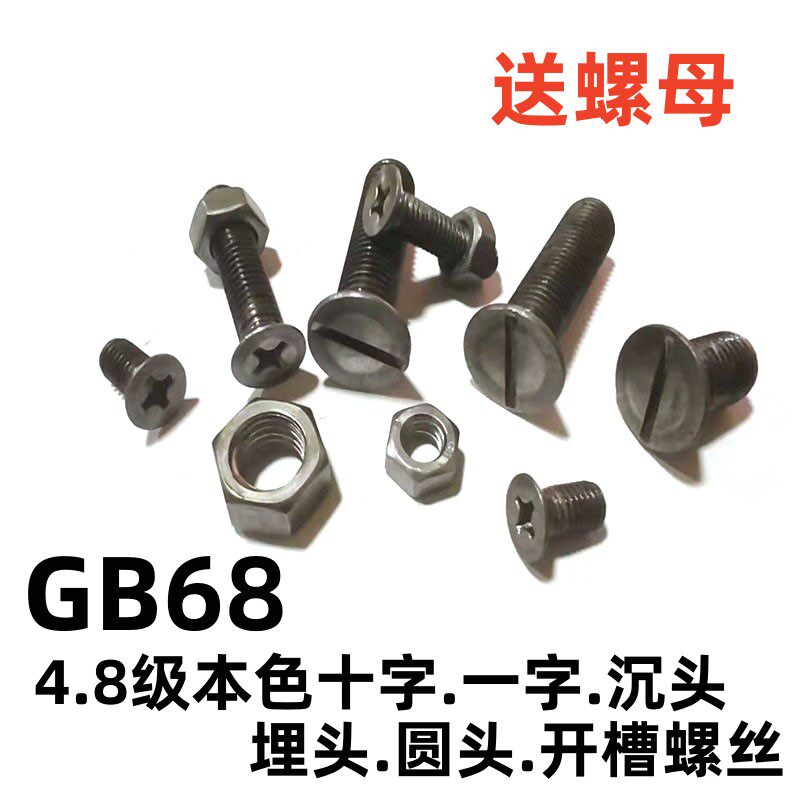📚 4.8级本色原色沉头十字一字平机圆头螺丝GB68埋头螺丝开槽螺栓