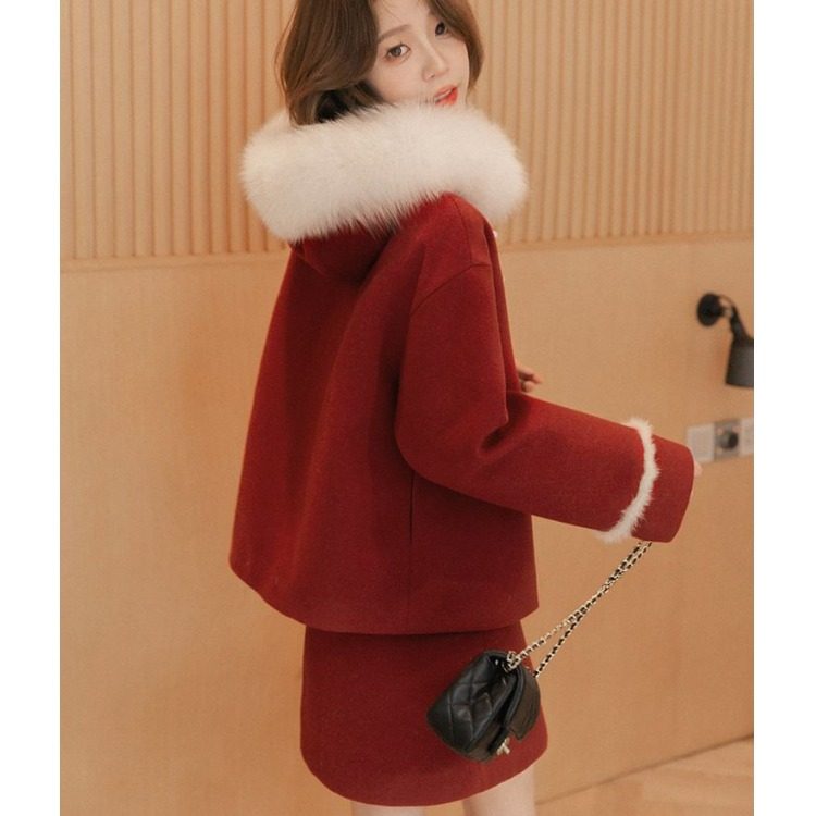 📚 小谷粒真狐狸毛领水貂毛拼接羽绒内胆毛呢套装女2023秋冬款两件套