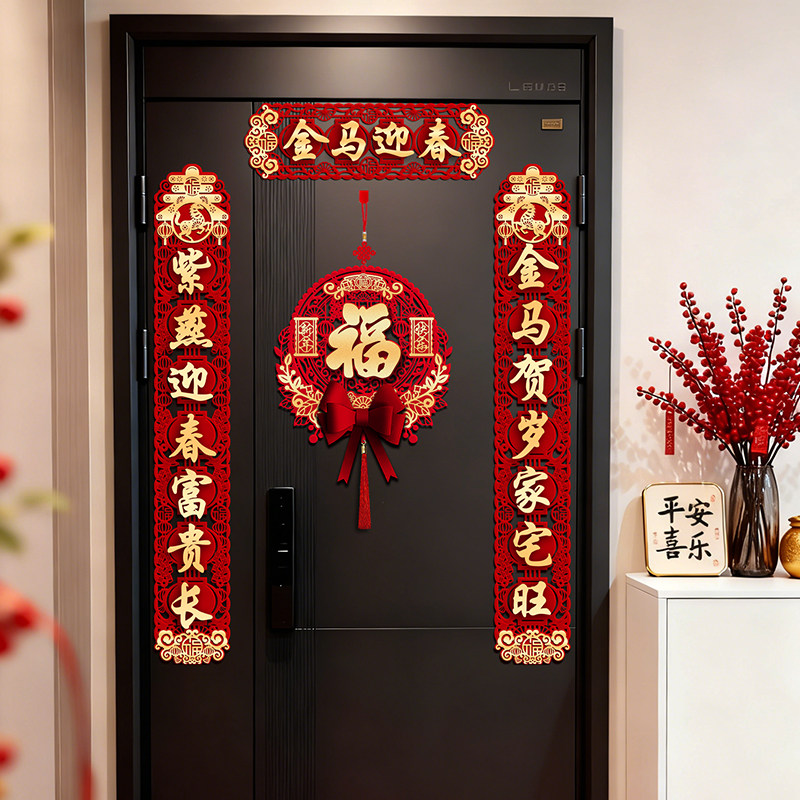 📚 新年对联磁吸2026新款马年门贴装饰春节春联过年福字植绒入户大门