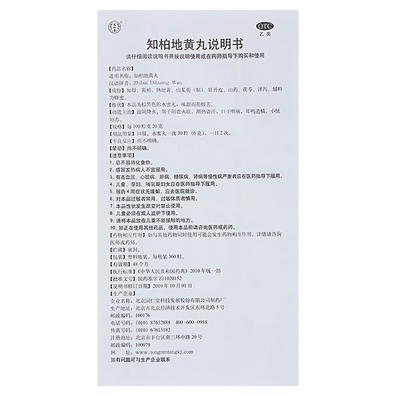 同仁堂知柏黄丸蜜丸阴虚