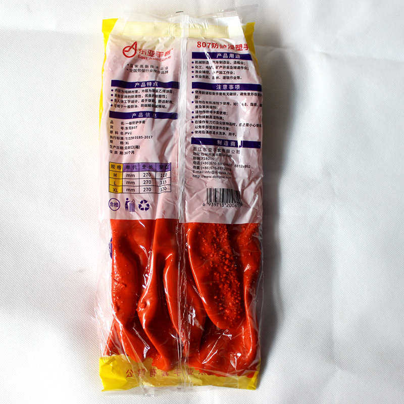 📚 东亚807止滑手套 防水耐油电镀防腐工业耐酸碱防护浸塑胶手套