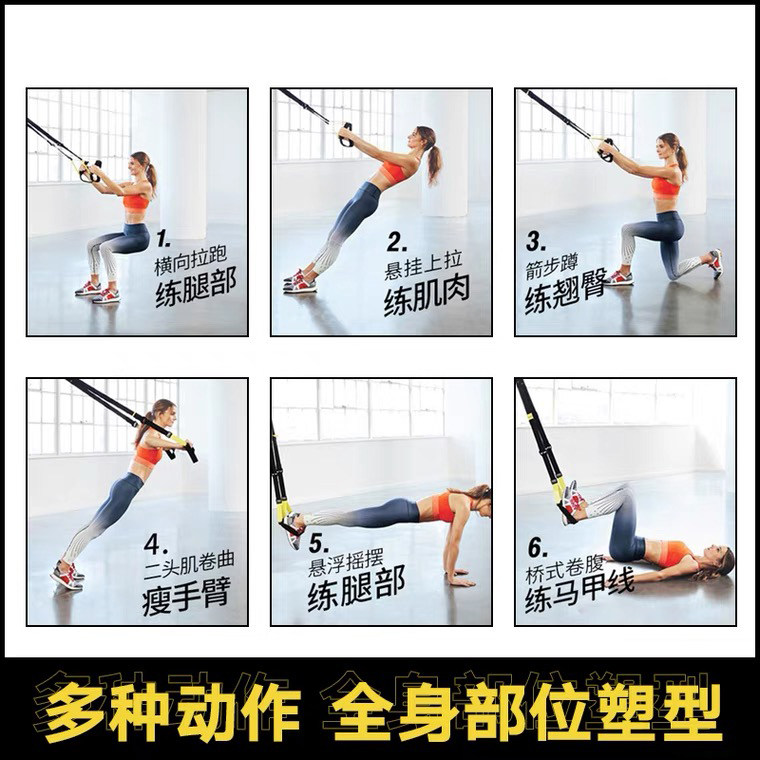 📚 P-trx6悬挂式训练带拉力绳运动男女阻力绳腹肌力量家用健身房器材