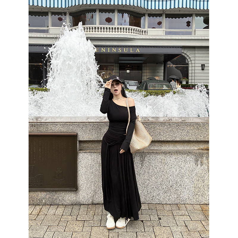 📚 肉装小cherry 优雅主义 松紧腰捏褶系带设计微胖显瘦长款针织半裙