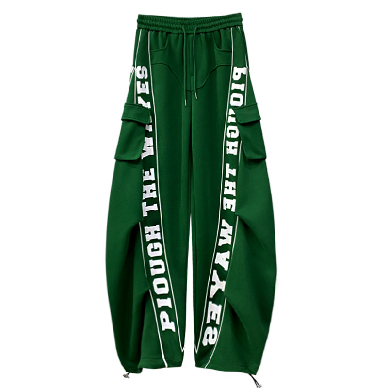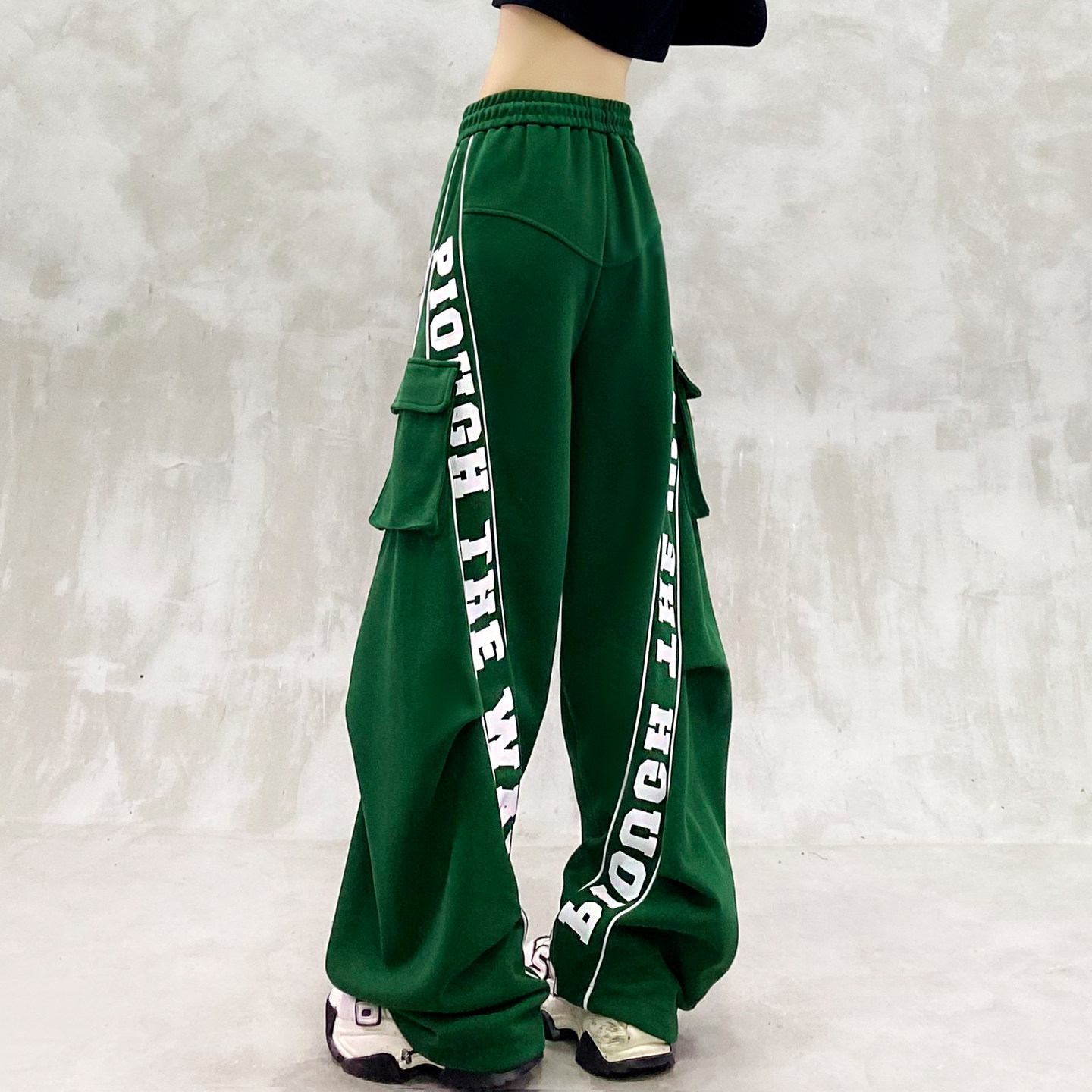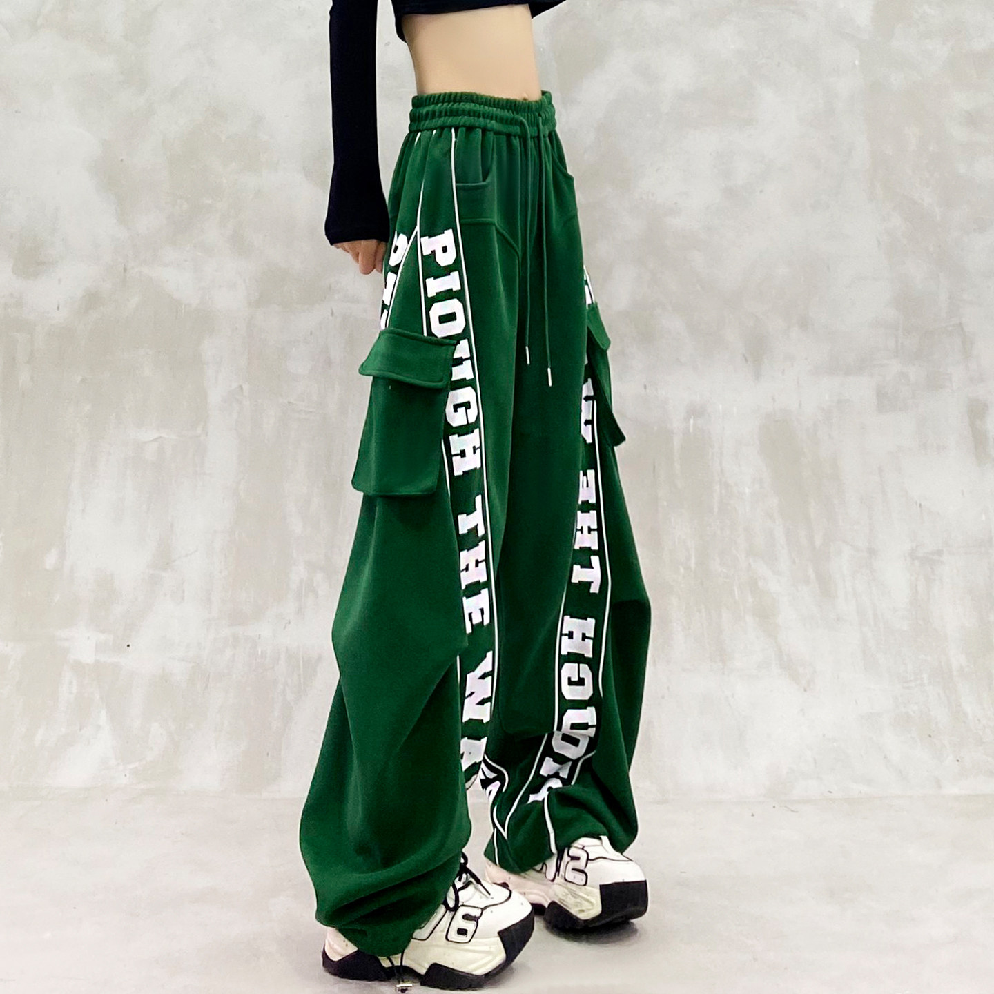 📚 美式侧边口袋设计宽松工装裤女秋新款洋气高腰显瘦百搭直筒弯刀裤